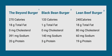 Here is a complete nutritional breakdown of the Beyond Burger (a popular meat alternative), a black bean burger, and a beef burger: